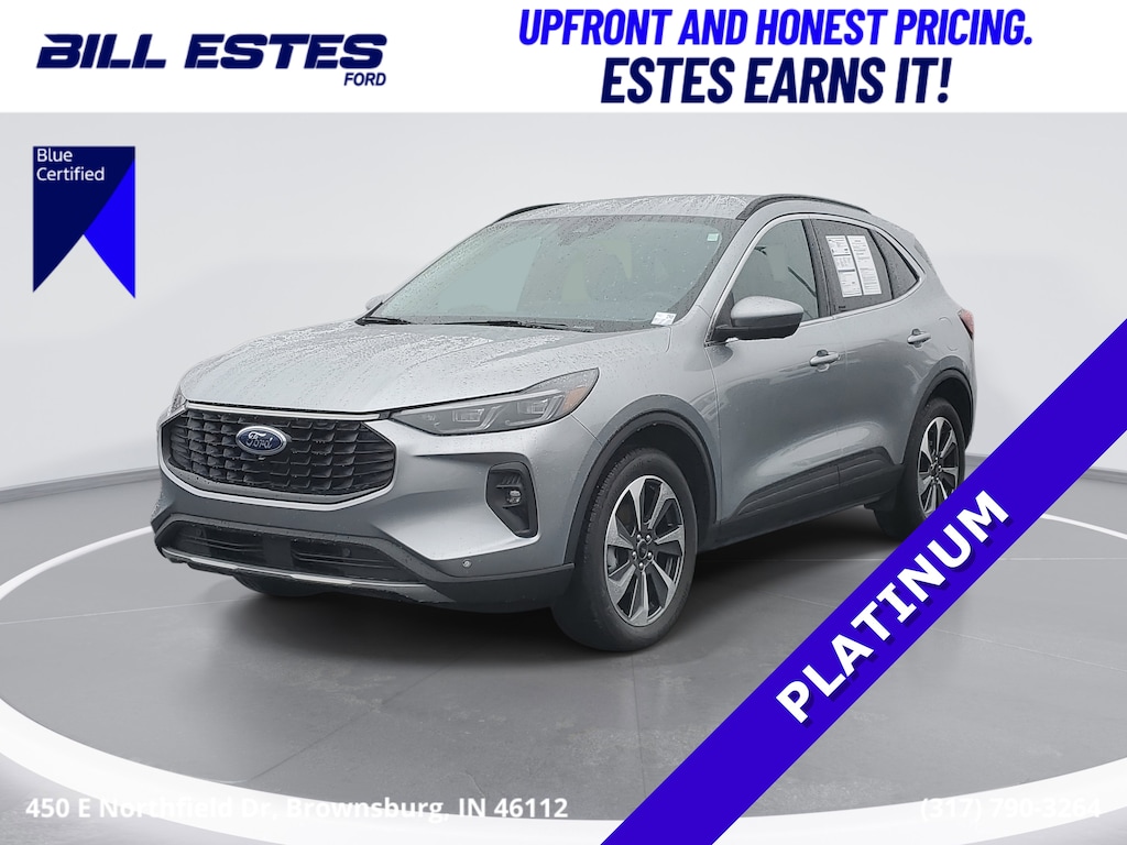 With only 10,321 miles, this 2024 Ford Escape Platinum AWD delivers premium comfort, advanced technology, and confident all-wheel-drive capability. Finished in Iconic Silver Metallic with an upscale Ebony ActiveX interior, this Escape offers refined performance and cutting-edge features backed by Ford Blue Advantage: Blue Certified coverage.