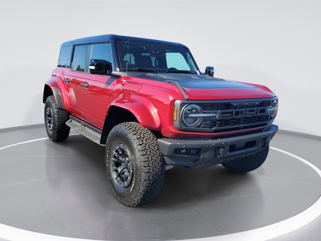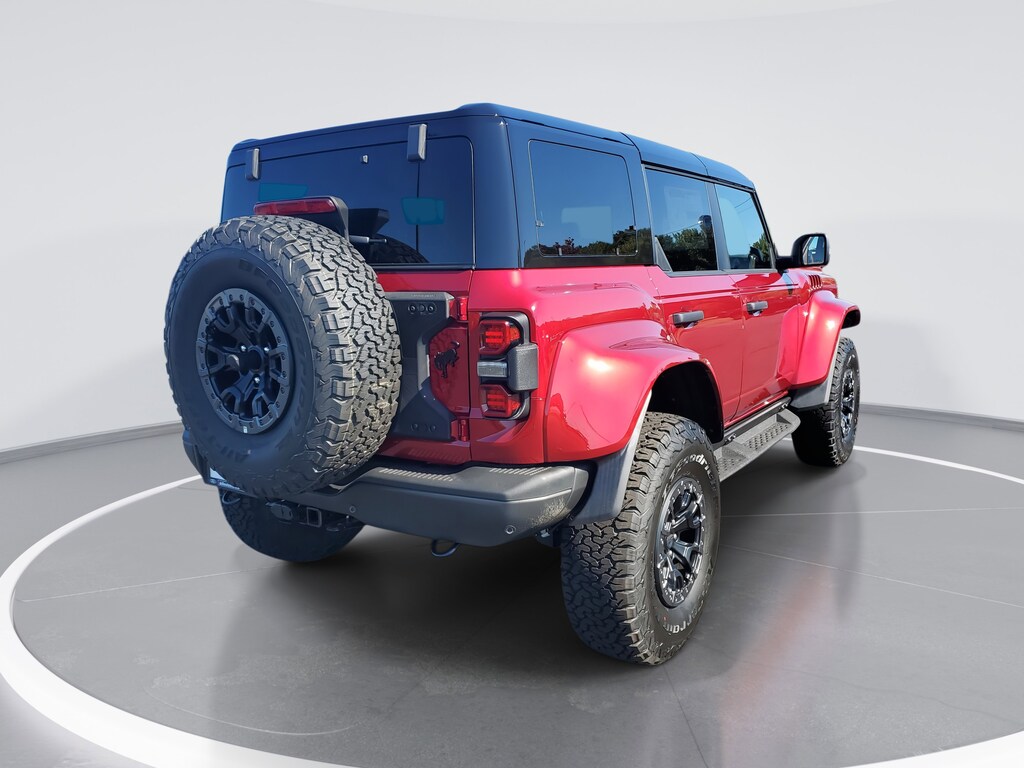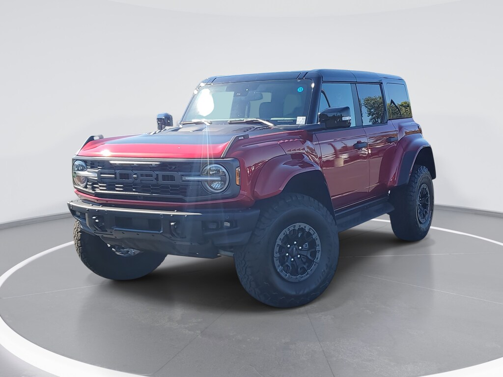 Ruby Red Metallic Tinted Clearcoat 2025 Ford Bronco Raptor 4WD 10-Speed Automatic 3.0L EcoBoost V6 Auto High-beam Headlights, Automatic temperature control, Connected Navigation, Equipment Group 374A Lux Package, Exterior Parking Camera Rear, Fully automatic headlights, Gloss Black Sideview Mirror Skull Caps, Hard Top Sound Deadening Headliner, Heated front seats, Heated steering wheel, Interior Carbon Fiber Pack, Radio: B&O Sound System by Bang & Olufsen, Raptor Black Appearance Package, SiriusXM w/360L, SYNC 4, Wheels: 17 Dark Carbonized Gray Alloy Painted.