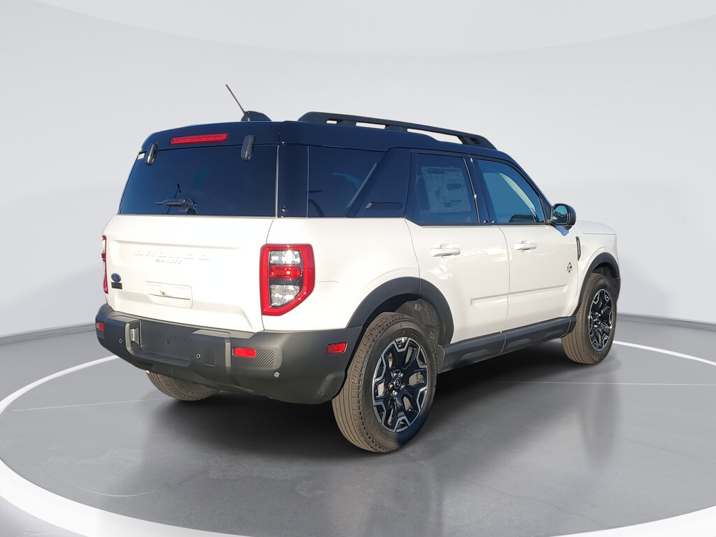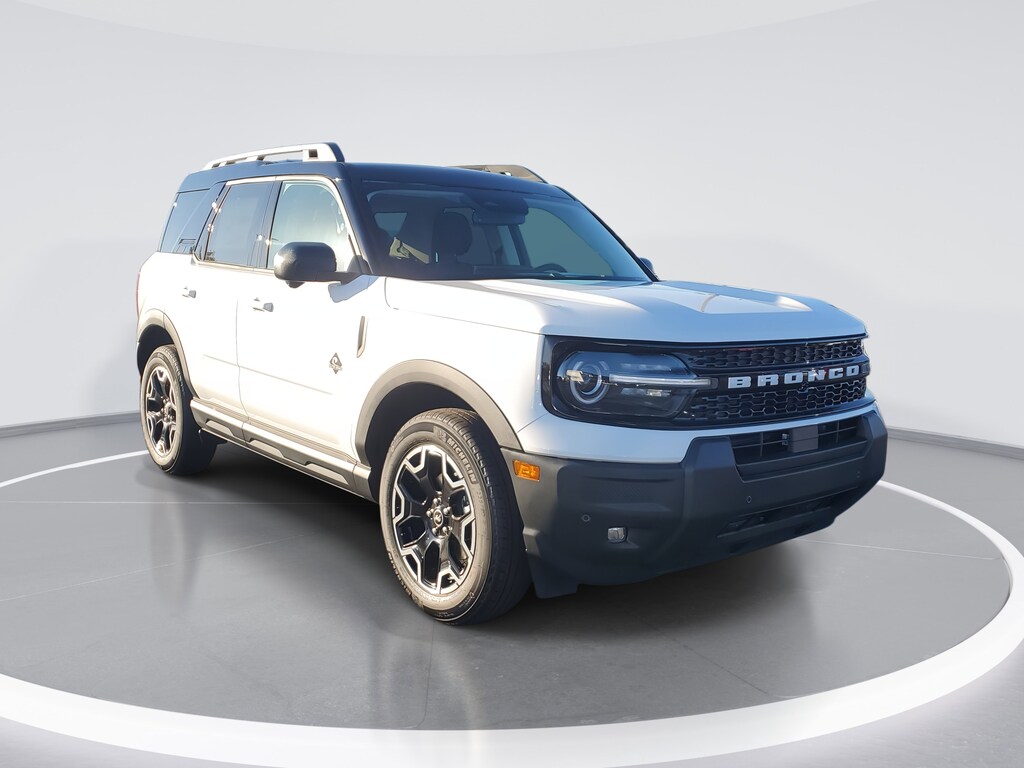 Oxford White 2025 Ford Bronco Sport Outer Banks 4WD 8-Speed Automatic 1.5L EcoBoost Auto High-beam Headlights, Automatic temperature control, B&O Sound System by Bang & Olufsen, Connected Navigation, Front dual zone A/C, Front Parking Sensors, Fully automatic headlights, HD Radio, Heated front seats, Outer Banks Tech Package+, Rear Parking Sensors.