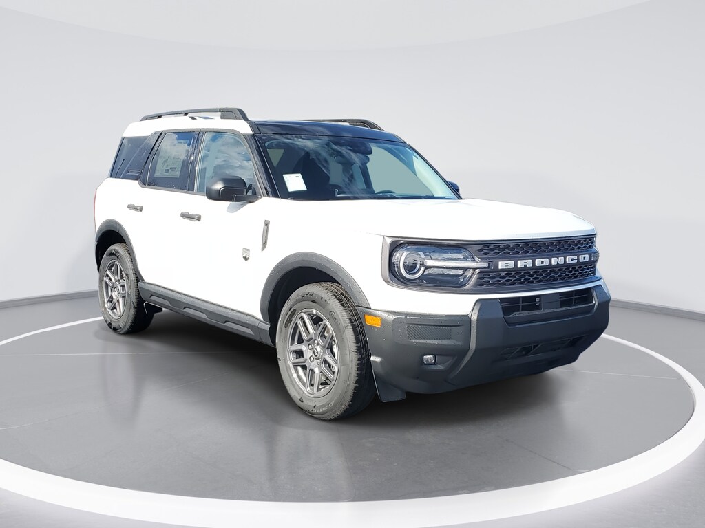 Oxford White 2025 Ford Bronco Sport Big Bend 4WD 8-Speed Automatic 1.5L EcoBoost AM/FM radio: SiriusXM, Auto High-beam Headlights, Automatic temperature control, Convenience Package, Front Driver/Passenger Seat Back Map Pockets, Fully automatic headlights, Heated 8-Way Power Driver's Seat, LED Fog Lamps, Power Moonroof, Premium Wrapped Steering Wheel, Rear Parking Sensors, SYNC 4 w/Enhanced Voice Recognition, Universal Garage Door Opener (UGDO).