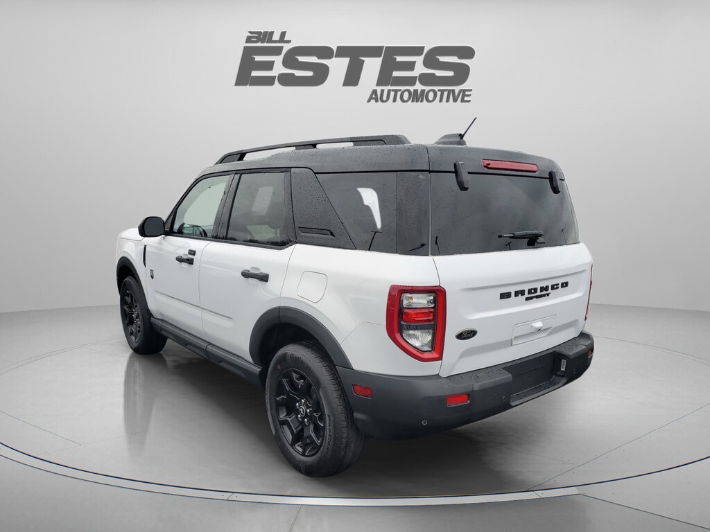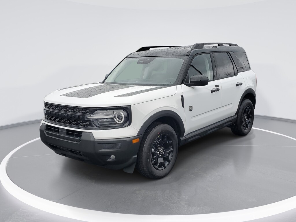 Oxford White 2025 Ford Bronco Sport Big Bend 4WD 8-Speed Automatic 1.5L EcoBoost AM/FM radio: SiriusXM, Auto High-beam Headlights, Automatic temperature control, Black Appearance Package, Carbon Black Grille w/Black BRONCO Lettering, Cargo Mat, Convenience Package, Equipment Group 200A, Front & Rear Floor Liners w/o Carpet Mats, Front Driver/Passenger Seat Back Map Pockets, Fully automatic headlights, Heated 8-Way Power Driver's Seat, LED Fog Lamps, Liftgate w/Black BRONCO SPORT Lettering, Painted Shadow Black Roof, Premium Trimmed Htd Fr Sport Contour Bucket Seats, Premium Wrapped Steering Wheel, Rear Parking Sensors, Universal Garage Door Opener (UGDO), Wheels: 17 Matte Black-Painted Aluminum.