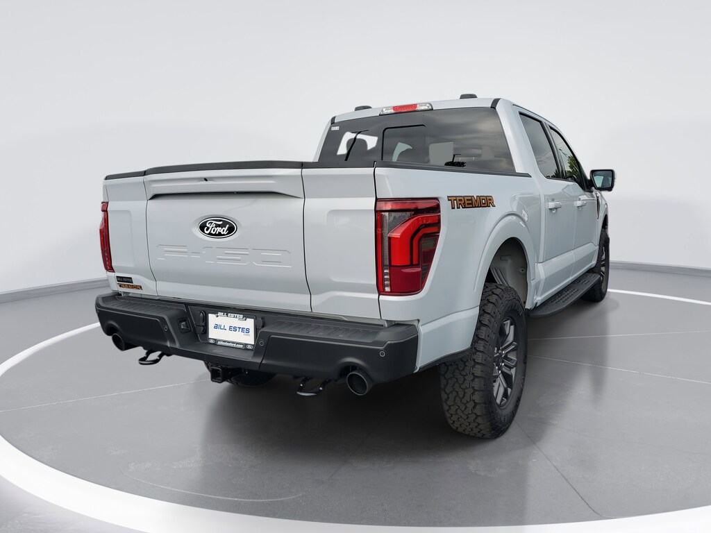 Space White Metallic 2025 Ford F-150 Tremor 4WD 10-Speed Automatic 5.0L V8 4WD, 2nd Row Heated Seats, 4 Pickup Box Tie-Down Plates, Ambient Lighting, Auto High-beam Headlights, Auto-Dimming Rear-View Mirror, Automatic temperature control, Bed Utility Package, Console Worksurface, Electronic Locking w/3.73 Axle Ratio, Equipment Group 402A High, Front Axle w/Torsen Differential, Fully automatic headlights, Heads-Up Display, Heated front seats, Heated Steering Wheel, Integrated Trailer Brake Controller, LED Box Lighting, LED Taillamps, Media Bin Door, Mobile Office Package, Modular Front Bumper & Carbon Black Rear Bumper, Partitioned Lockable Rear Storage, Power Glass Heated Sideview Mirrors, Power Tailgate, Power-Adjustable Pedals w/Memory, Premium Wrapped Steering Wheel, Radio: B&O Unleashed Sound System by Bang & Olufsen, Rain-Sensing Wipers, Tow/Haul Package, Two-Speed Automatic AWD w/Mechanical Locking 4WD, Unique Tremor Leather-Trimmed Bucket Seats, Universal Garage Door Opener, Wireless Charging.